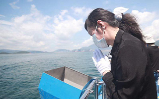 • 服务人员指导骨灰撒海仪式